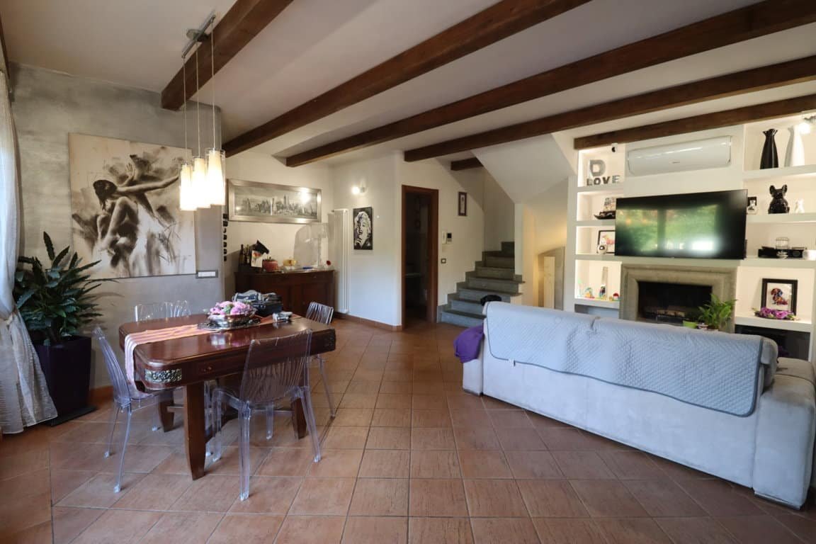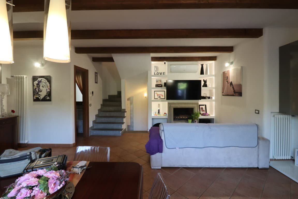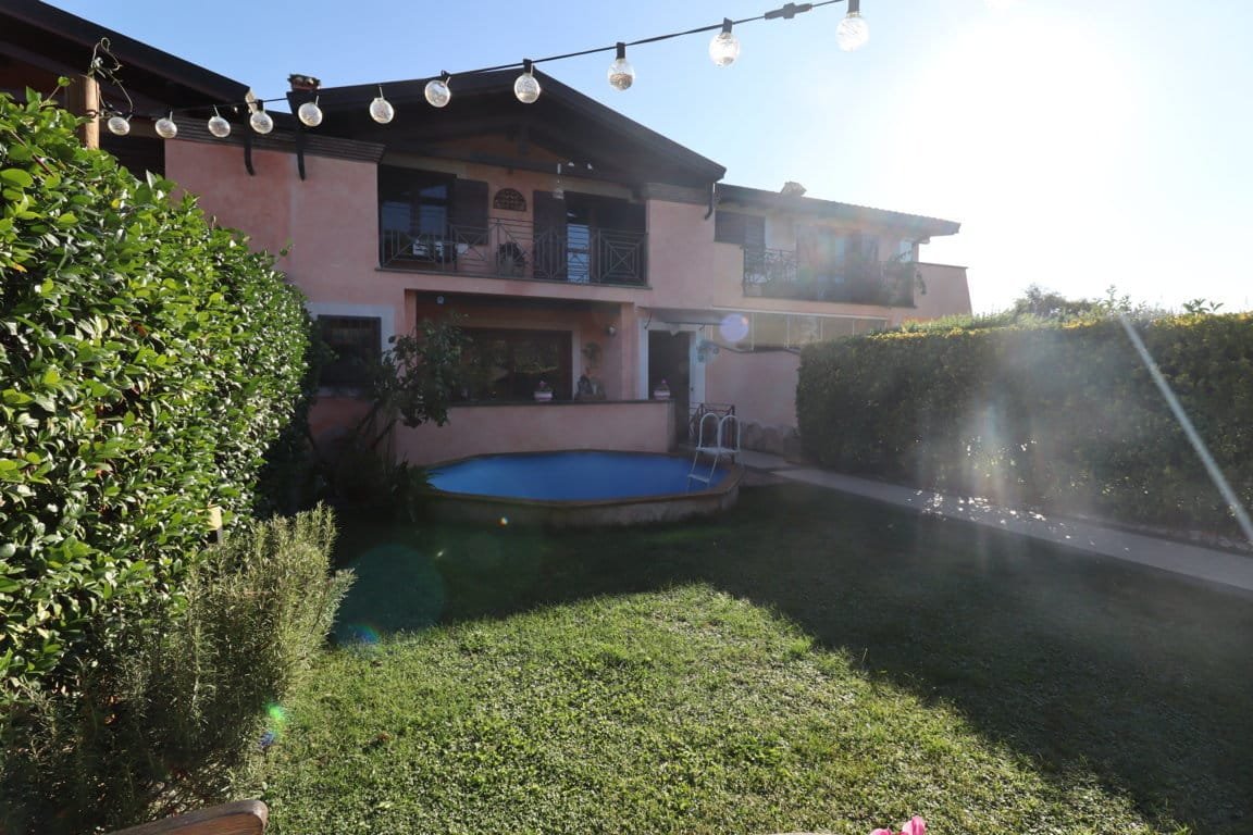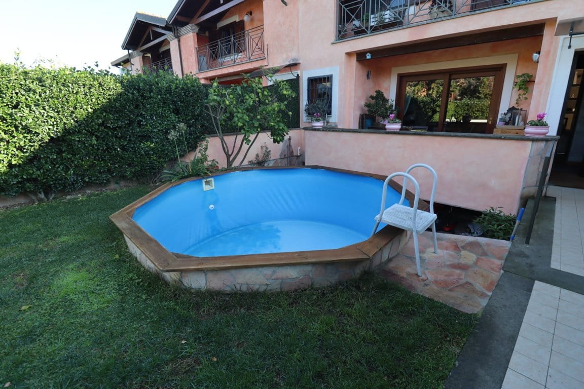 Formello, precisamente su Via delle Macere, in posizione strategica per raggiungere Roma in pochi minuti, la Tocchi Real Estate è lieta di presentare rifinitissima villetta a schiera in elegante comprensorio. La proprietà si sviluppa su tre livelli per una superficie complessiva di circa 120mq. Al piano terra troviamo un ampio soggiorno con camino, cucinotto e bagno. Al primo piano, con soffitto rifinito con travi a vista, abbiamo invece una camera matrimoniale con affaccio su balconcino, una camera singola , uno studio volendo adattabile a ulteriore cameretta e un bagno con vasca. Al piano seminterrato è presente invece ampia sala hobby con ripostiglio e un comodo bagno lavanderia. La villa presenta rifiniture di alto livello che comprendono cucina in legno con top in marmo, finestre e persiane in legno con doppi vetri, antifurto d’ultima generazione a raggi infrarossi con telecamere di videosorveglianza , doppio sistema di riscaldamento con caldaia e condizionatori caldo/freddo. Esternamente troviamo un terrazzino coperto con accesso sul giardino di circa 70 mq e piscina.